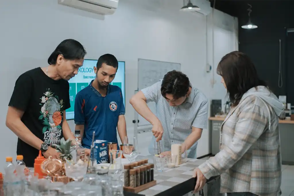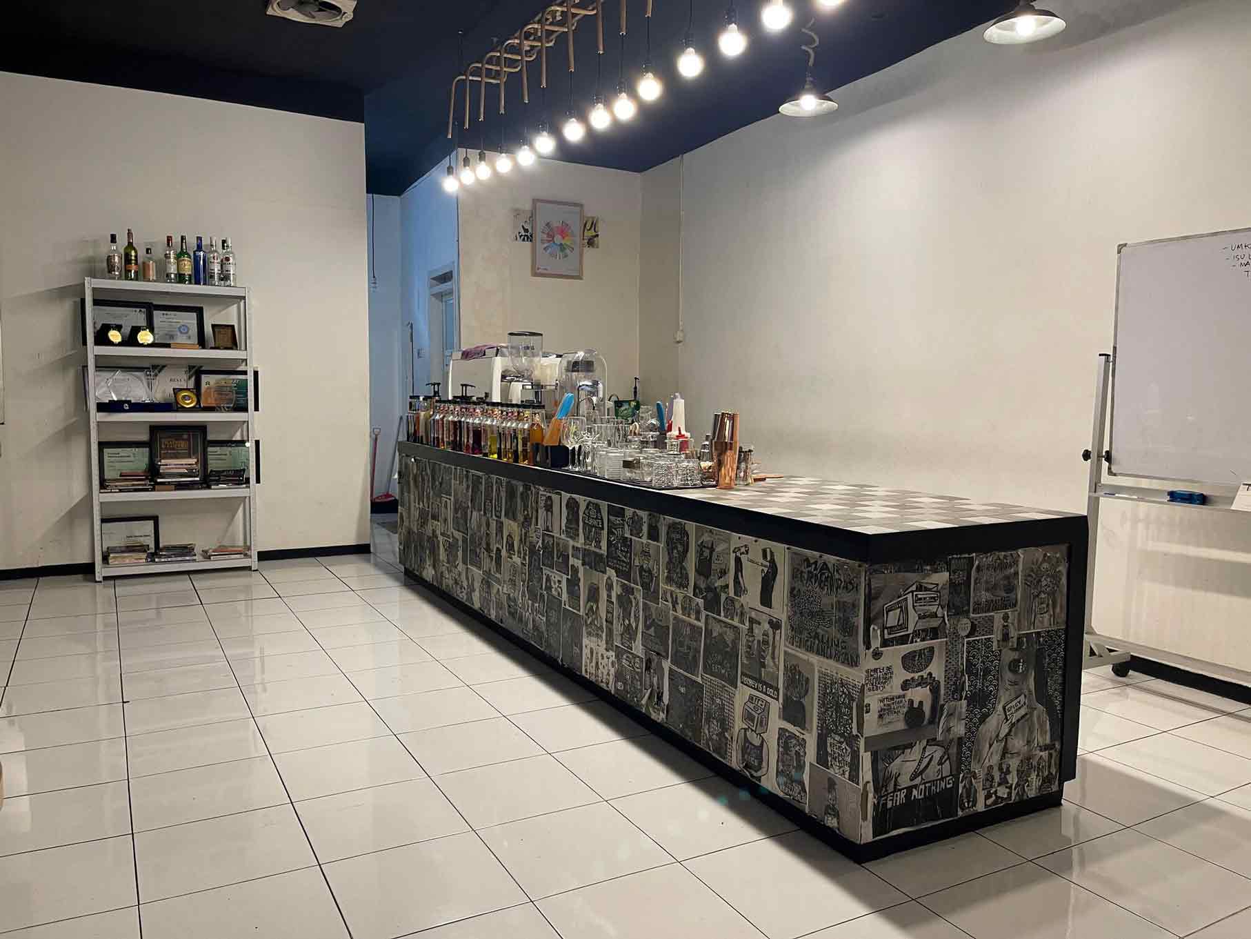 Praktik langsung di area bar berstandar industri, dengan alat dan bahan baku yang telah disediakan secara gratis.